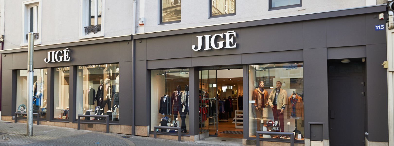 La Boutique Jigé existe à Cholet depuis 1950. Ses fondateurs, la famille Gagnerot, ont fait de cette maison un lieu incontournable pour les costumes, vestes, pantalons, jean's, manteaux, imperméables, blousons, chemises, pulls, gilets, cravates, ceintures...